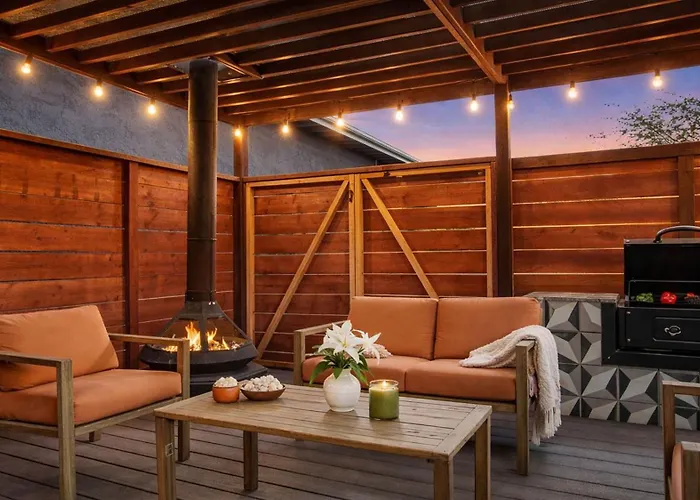 Situated within 7 km of the Seaport Village, Hot Tub • Bbq Island • Outdoor Living • Near San Diego Beaches Glidden Glow By Avantstay villa invites guests to relax at a patio. This San Diego holiday home offers guests a relaxing experience with a Jacuzzi.
